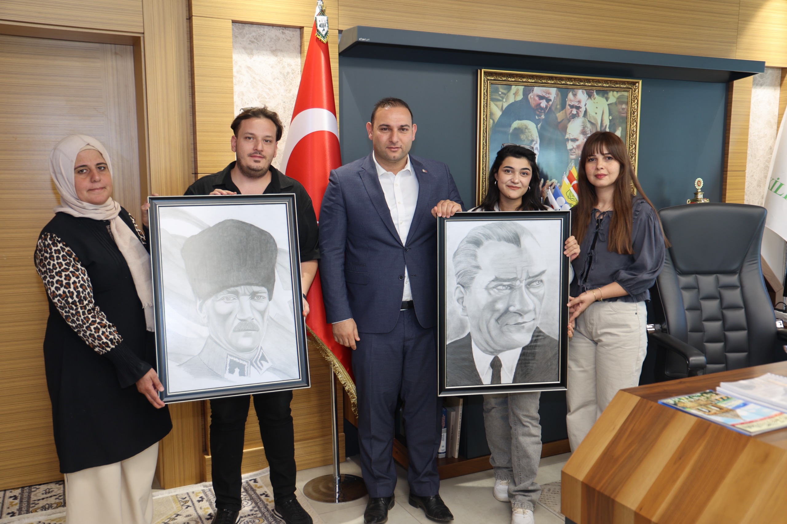 Ziyaret sırasında öğretmenler, kendi çalışmalarından olan Atatürk portrelerini Başkanımıza hediye ederek anlamlı bir jestte bulundu. Başkan Bilecen, nazik ziyaretleri ve değerli hediyeleri için teşekkür ederek, sanata ve sanatçılara her zaman destek olacaklarını ifade etti.