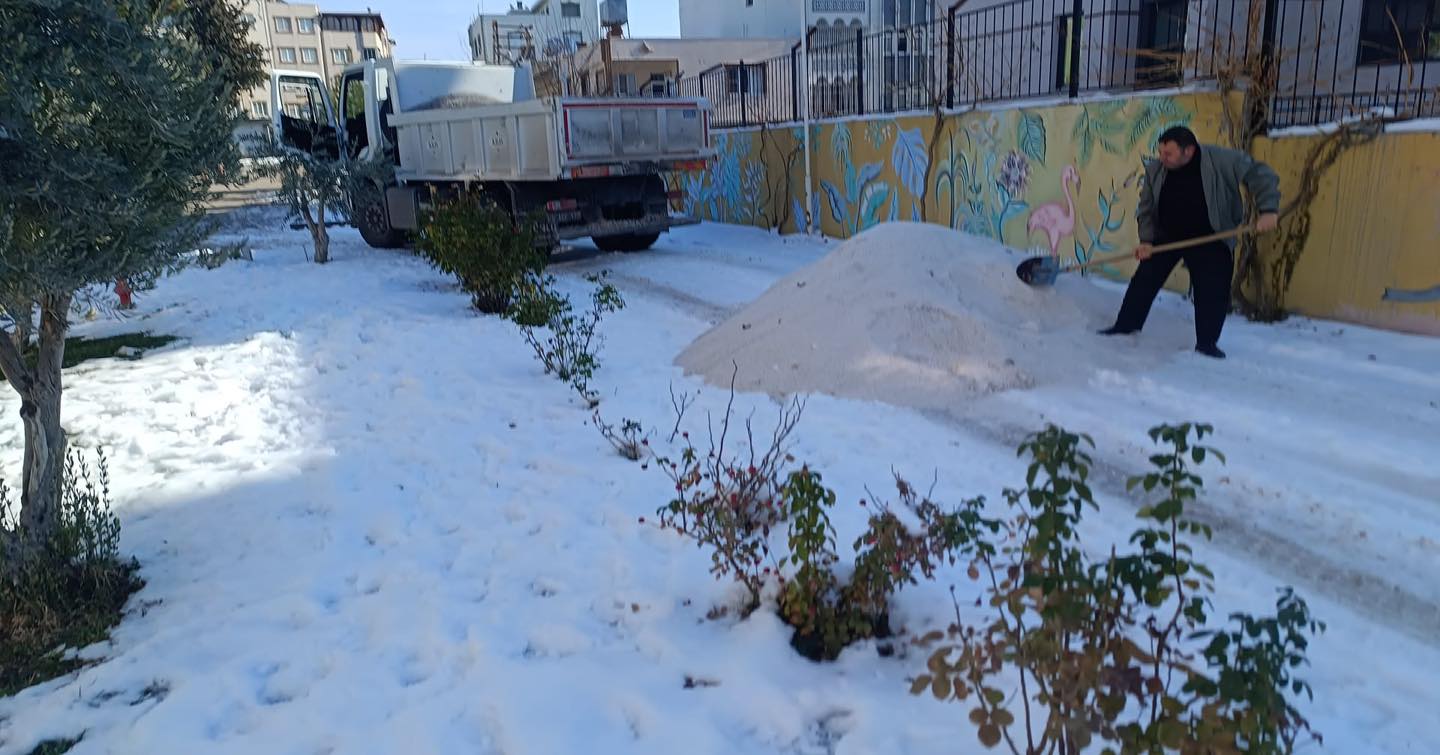 Okullarımızın kar temizliği çalışmaları ekiplerimiz tarafından aralıksız ve titizlikle sürdürülmektedir.