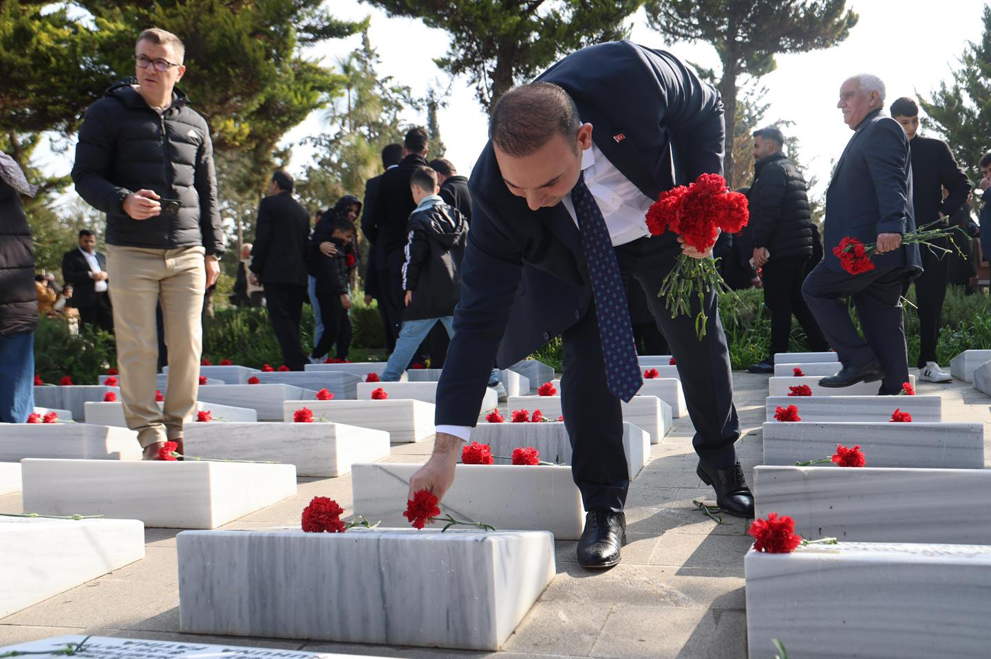 Gerçekleştirilen ziyarette aziz şehitlerimiz dualarla anılırken, vatan uğruna canlarını feda eden kahramanlarımız bir kez daha minnet ve şükranla yad edildi. Katılımcılar, şehit kabirlerine karanfiller bırakarak saygı duruşunda bulundu.